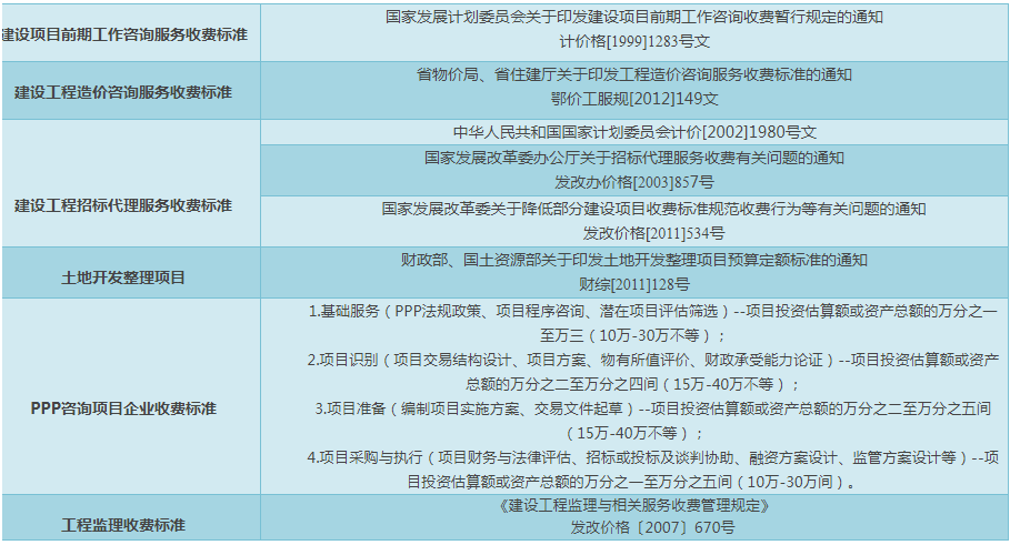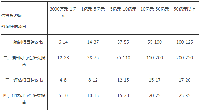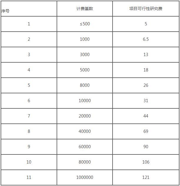 建設(shè)項目前期工作咨詢服務(wù)收費標準