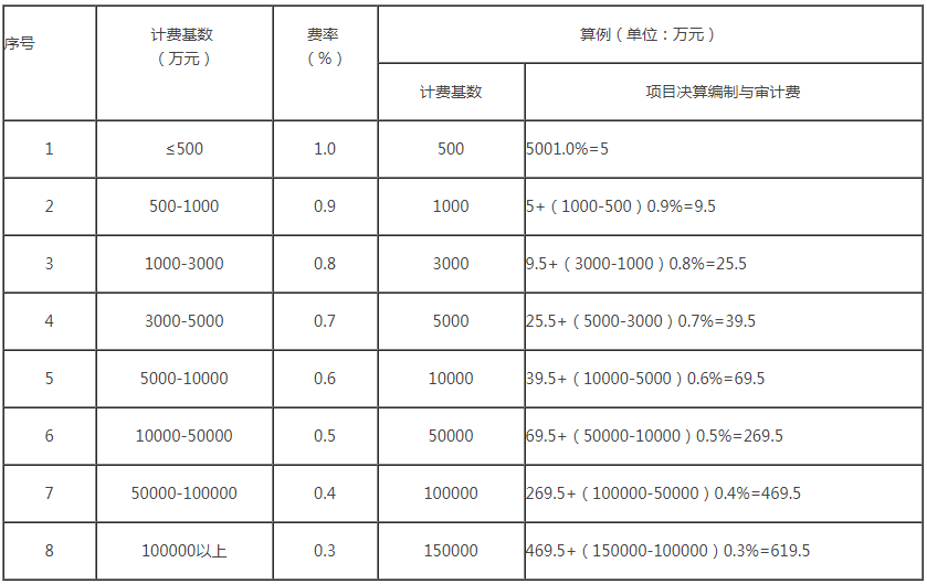 以工程施工費與設(shè)備購置費之和最為計費基數(shù),采用差額定率累進法計算。