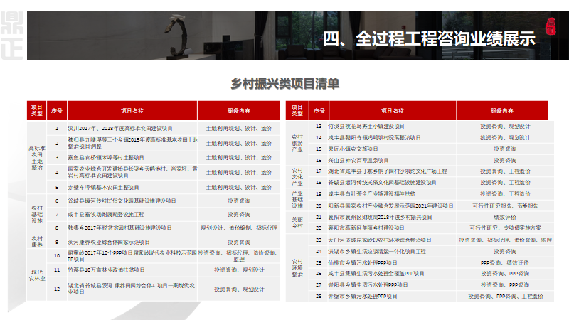 鼎正始終踐行“以全過程工程咨詢及PPP全生命周期咨詢服務(wù)為先導(dǎo)、以投資管控為主線、以項(xiàng)目增值為目標(biāo)”的一站式工程咨詢服務(wù)理念,積極探索參與鄉(xiāng)村振興的領(lǐng)域與路徑,緊跟鄉(xiāng)村振興新動(dòng)向,充分發(fā)揮工程咨詢企業(yè)高智力支撐作用,干出工程咨詢新作為!