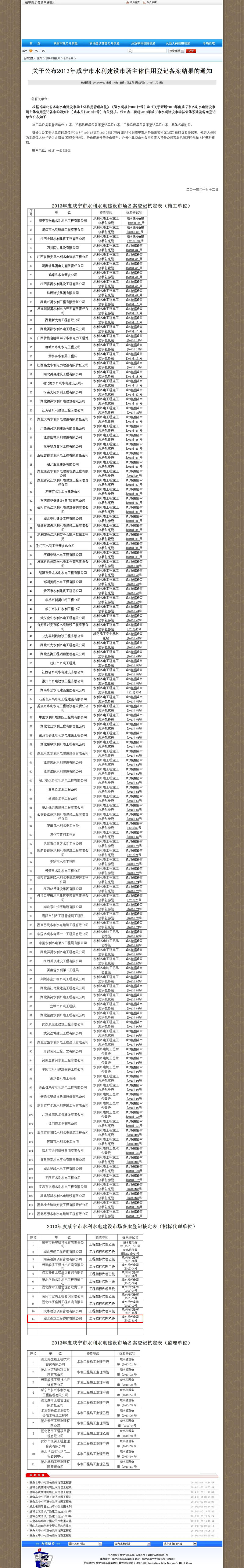 我公司成功入選2013年咸寧市水利建設(shè)市場(chǎng)主體信用登記備案單位