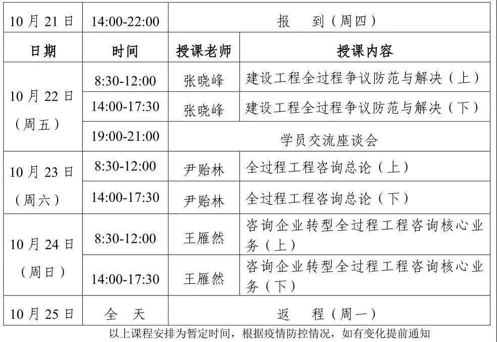 課程推薦 | 10月21日 天津 ? 全過(guò)程工程咨詢(xún)高端研修班即將開(kāi)課!