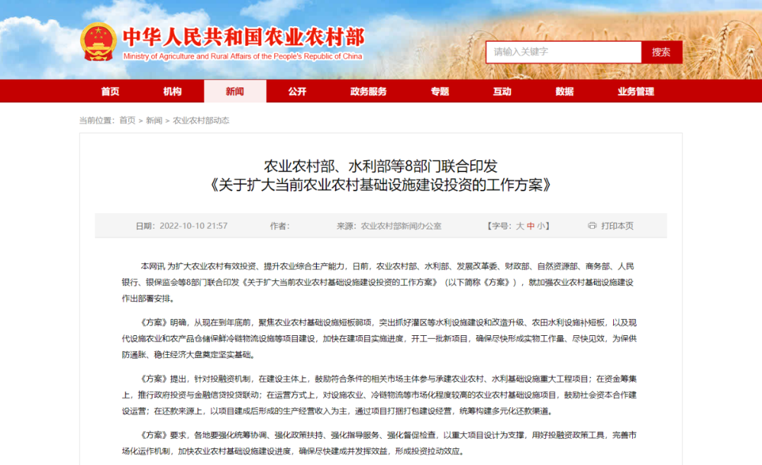 農(nóng)業(yè)農(nóng)村部、水利部等8部門聯(lián)合印發(fā)