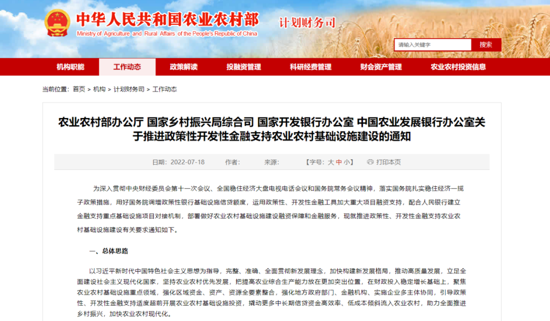 關(guān)于推進(jìn)政策性開發(fā)性金融支持農(nóng)業(yè)農(nóng)村基礎(chǔ)設(shè)施建設(shè)的通知