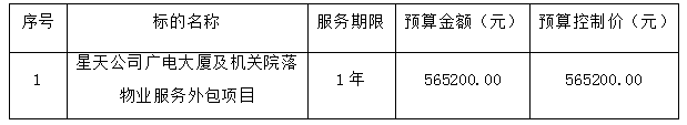 1、采購(gòu)項(xiàng)目名稱:星天公司廣電大廈及機(jī)關(guān)院落物業(yè)服務(wù)外包項(xiàng)目