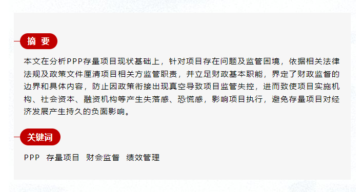 新機(jī)制下PPP存量項目持續(xù)監(jiān)管探討