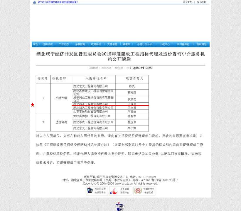 【經(jīng)營成果】我司入圍湖北咸寧經(jīng)濟開發(fā)區(qū)管理委員會2015年度建設工程招標代理及造價咨詢中介服務機構(gòu)庫招標代理單位