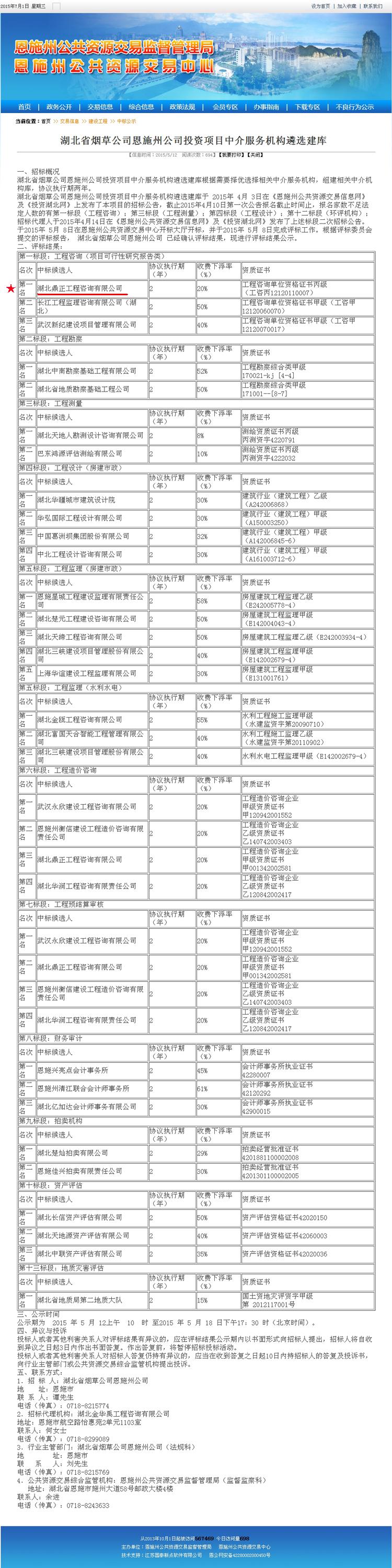 【經(jīng)營成果】我司入選湖北省煙草公司恩施州公司投資項目工程咨詢中介服務(wù)機(jī)構(gòu)庫