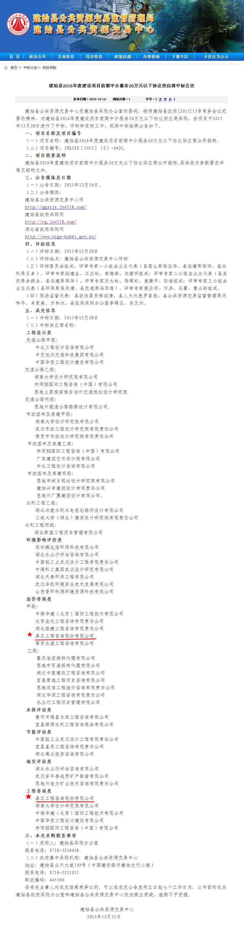 【經(jīng)營成果】我司入選建始縣2016年度建設(shè)項(xiàng)目前期中介服務(wù)20萬元以下協(xié)議供應(yīng)商
