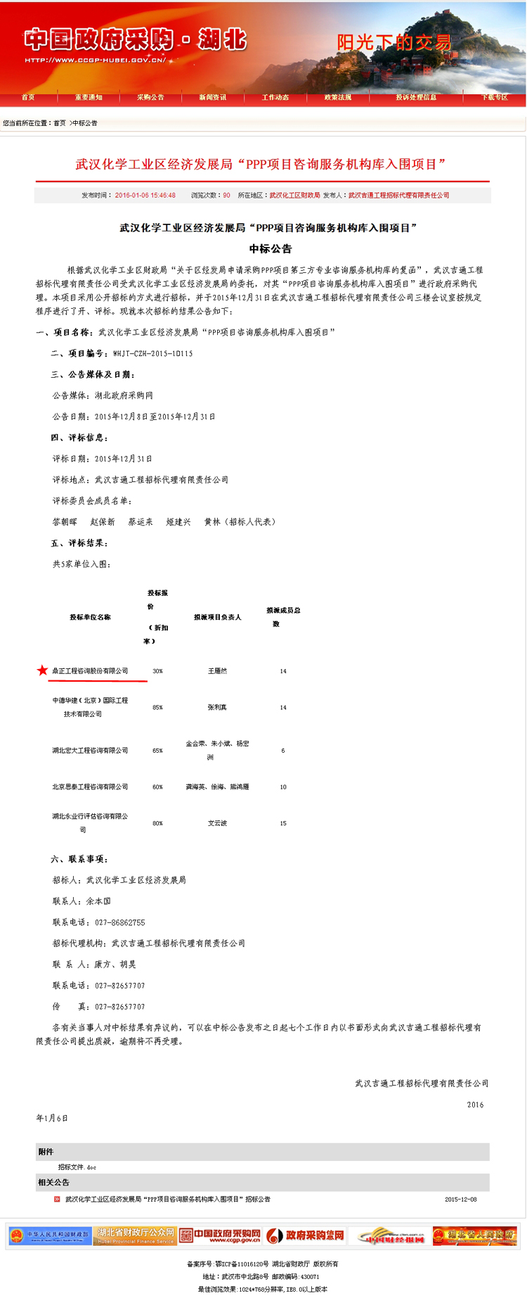【經(jīng)營成果】我司入圍武漢化學工業(yè)區(qū)經(jīng)濟發(fā)展局“PPP項目咨詢服務機構(gòu)庫”