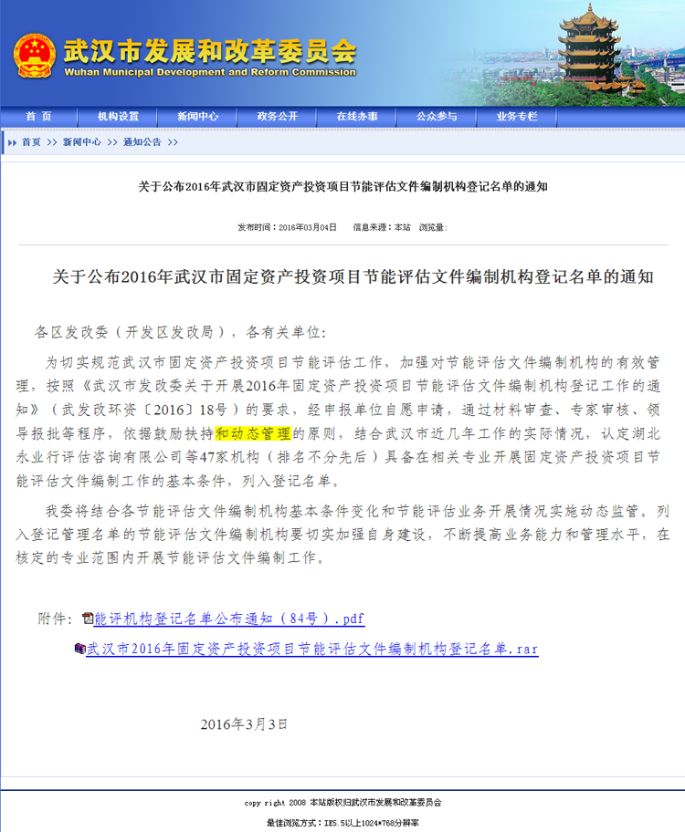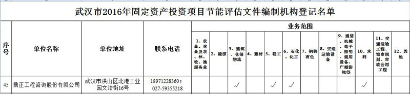 【經(jīng)營成果】我司入選2016年武漢市固定資產(chǎn)投資項目節(jié)能評估文件編制機構(gòu)登記名單