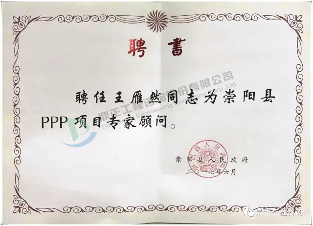 會中,崇陽縣人民政府為王雁然先生頒發(fā)崇陽縣PPP項目專家顧問聘書,負責指導(dǎo)崇陽縣PPP工作。