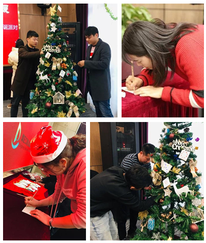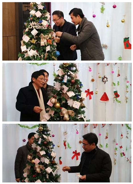 平安夜,行政人事部的同事們化身“圣誕老人”,貼心的為每一位同事準(zhǔn)備了平安果;由鼎正大家庭共同裝飾的圣誕樹掛滿了大家親手寫的祝??ㄆ瑸槭フQ節(jié)的到來(lái)更添一份濃濃的節(jié)日色彩。