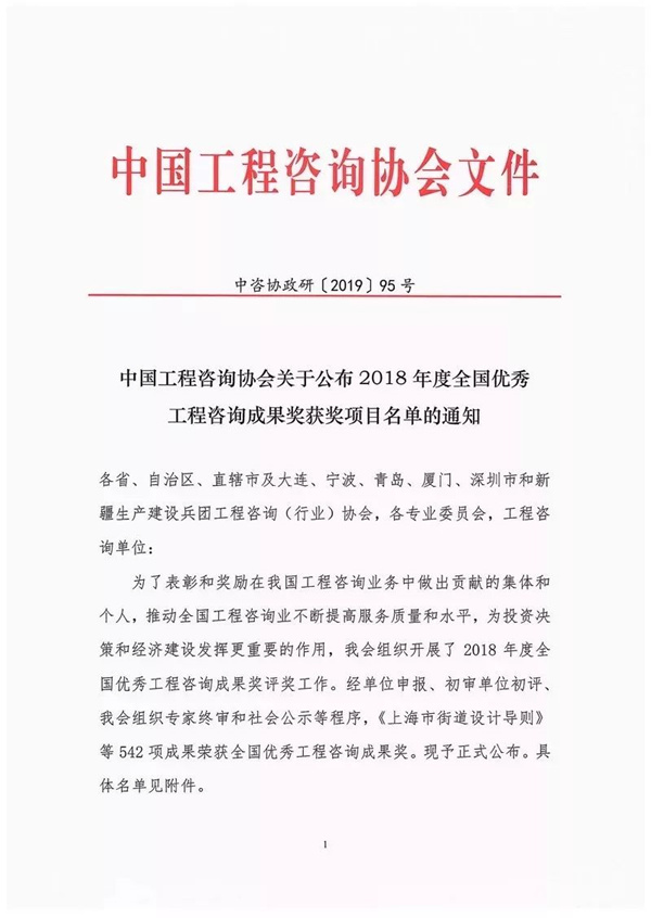 “全國(guó)優(yōu)秀工程咨詢成果獎(jiǎng)”自1996年經(jīng)國(guó)家發(fā)改委批準(zhǔn)正式設(shè)立,后經(jīng)國(guó)務(wù)院監(jiān)察部確認(rèn)保留,并由中國(guó)工程咨詢協(xié)會(huì)每?jī)赡杲M織評(píng)選一次的工程咨詢行業(yè)的全國(guó)性獎(jiǎng)項(xiàng),旨在表彰和獎(jiǎng)勵(lì)在我國(guó)工程咨詢業(yè)務(wù)實(shí)踐中做出突出貢獻(xiàn)的集體和個(gè)人,獲獎(jiǎng)項(xiàng)目被認(rèn)為是代表我國(guó)工程咨詢界最高水平的項(xiàng)目,其工程咨詢成果具有創(chuàng)新性和推廣應(yīng)用前景,能夠積極地推動(dòng)全國(guó)工程咨詢業(yè)服務(wù)質(zhì)量和水平的不斷提高,促進(jìn)投資決策科學(xué)、規(guī)范地實(shí)施,更好地為我國(guó)經(jīng)濟(jì)建設(shè)發(fā)展提供專業(yè)的咨詢服務(wù)。
