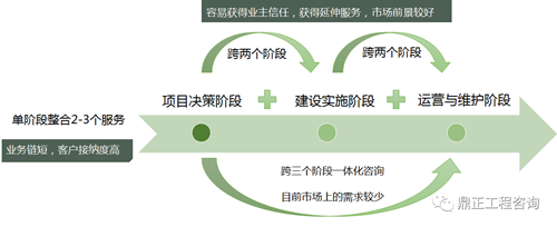 1)完全全過程是提供跨投資決策期、建設(shè)期與運(yùn)維期三大階段的一體化咨詢,目前市場上的需求較少。