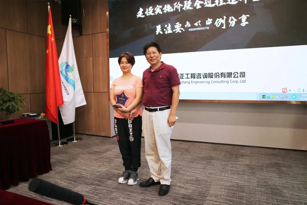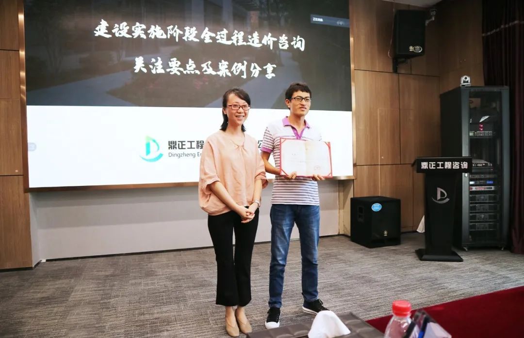 在交流會尾聲,鼎正技術(shù)總監(jiān)朱立冬、副總經(jīng)理毛迎霞為鼎正荊州分公司技術(shù)負責人李素娟、項目經(jīng)理沈雯頒發(fā)榮譽。