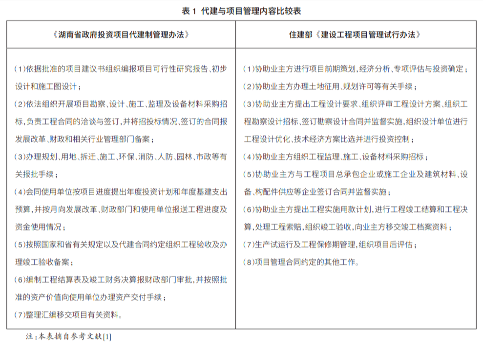 為貫徹2004年國(guó)務(wù)院發(fā)布的《關(guān)于投資體制改革的決定》精神,我國(guó)非經(jīng)營(yíng)性政府投資項(xiàng)目已逐步形成了“政府專(zhuān)業(yè)機(jī)構(gòu)代建、政府專(zhuān)業(yè)代建公司代建和社會(huì)代建單位代建”三種主要模式。2007年,湖南省對(duì)社會(huì)代建項(xiàng)目作出明確規(guī)定,代建服務(wù)的業(yè)主包含政府職能部門(mén)和項(xiàng)目使用方,體現(xiàn)了政府職能部門(mén)(發(fā)改和財(cái)政等部門(mén))對(duì)非經(jīng)營(yíng)性政府投資項(xiàng)目的監(jiān)管,而且是可考核的工作。2007年住建部發(fā)布的《建設(shè)工程項(xiàng)目管理試行辦法》明確了為業(yè)主服務(wù)的項(xiàng)目管理內(nèi)容(表1),是以“協(xié)助”為主的服務(wù),這在當(dāng)時(shí)為推進(jìn)我國(guó)項(xiàng)目管理發(fā)展是必要的。目前,從效果考核的角度看,除了有部分是代理業(yè)主履行并可考核的工作外,大多的“協(xié)助”工作涉及到與業(yè)主的相互配合,服務(wù)效果難以考核。不能考核的工作要想得到業(yè)主和社會(huì)的認(rèn)可是困難的,這也是截至目前無(wú)法出臺(tái)全國(guó)性的工程項(xiàng)目管理服務(wù)酬金標(biāo)準(zhǔn)的原因之一。