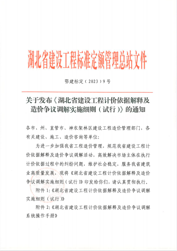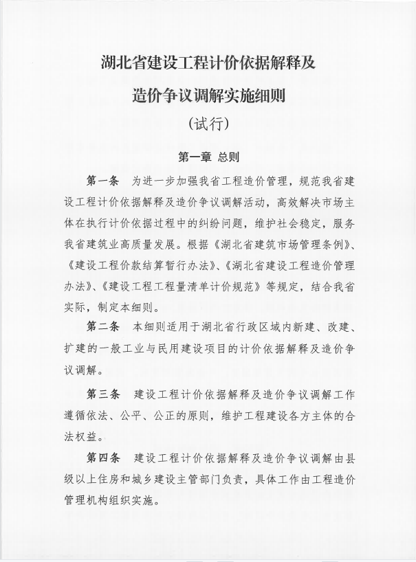 《湖北省建設(shè)工程計價依據(jù)解釋及造價爭議調(diào)解實(shí)施細(xì)則(試行)》