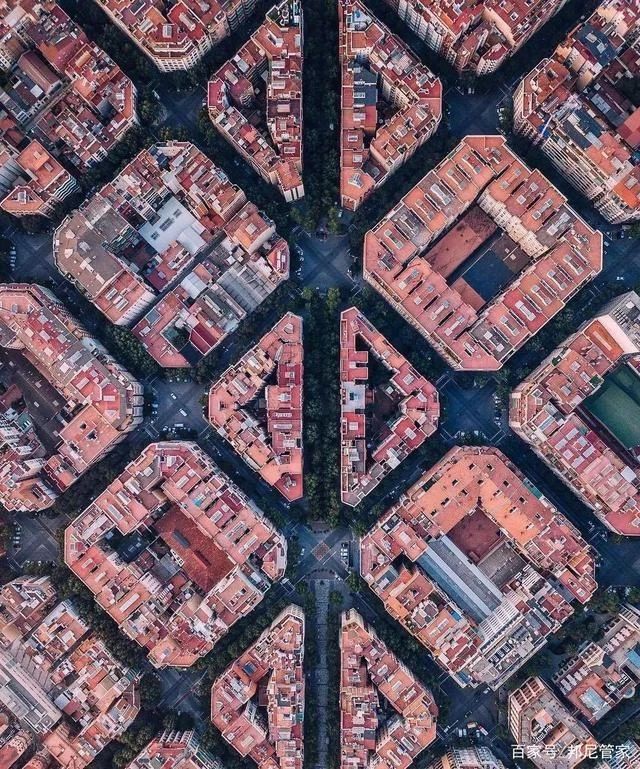 他甚至還規(guī)劃幾個街區(qū)構(gòu)成一個單元,來共享一所學(xué)校、醫(yī)院、市場等公共設(shè)施,塞爾達(dá)近200年前的超前設(shè)計,為這座城市賦予了血肉,也奠定了巴塞羅那城建的基礎(chǔ)。城市的樓房排列整齊,高度一致。道路像棋盤一樣,宅樓高不超過六層樓。