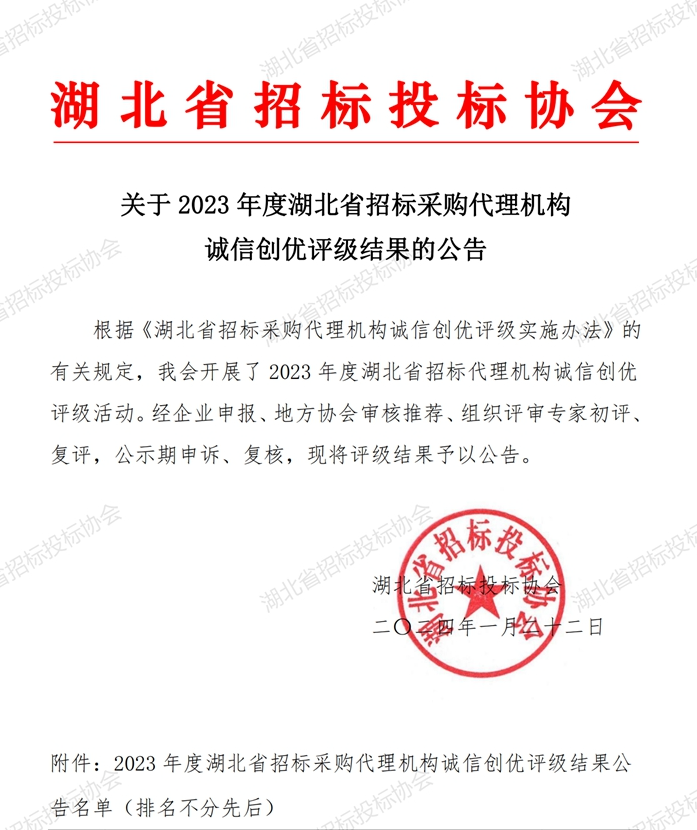 此次評選是湖北省招投標(biāo)協(xié)會根據(jù)《關(guān)于建立完善守信聯(lián)合激勵和失信聯(lián)合懲戒制度加快推進(jìn)社會誠信建設(shè)的指導(dǎo)意見》要求和《政府采購招標(biāo)代理機(jī)構(gòu)管理辦法》及相關(guān)法律法規(guī)規(guī)定,按照“自愿、公開、公平、公正、非營利”原則,在會員單位內(nèi)開展“湖北省招標(biāo)投標(biāo)行業(yè)招標(biāo)采購代理機(jī)構(gòu)誠信創(chuàng)優(yōu)評級”活動。