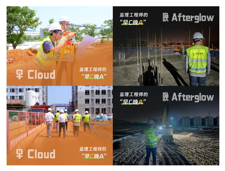 早:天還未亮,監(jiān)理工程師,已經(jīng)到達(dá)施工現(xiàn)場(chǎng)。迎著Cloud(藍(lán)天白云),開(kāi)啟第一輪現(xiàn)場(chǎng)巡查,頭戴安全帽,手夾施工圖,一邊巡查一邊記錄。