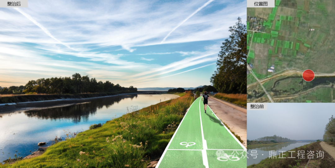 對(duì)雙河村漂水河駁岸進(jìn)行整治,對(duì)水系進(jìn)行清淤(恢復(fù)河床)、清障(疏通河道)、清理垃圾(清潔河道)、保持河道流暢干凈。對(duì)現(xiàn)狀岸邊植物雜灌木清除梳理,局部可增補(bǔ)色葉植物,豐富季相變化。增加濱水休閑步道,打造濱水開(kāi)放空間。