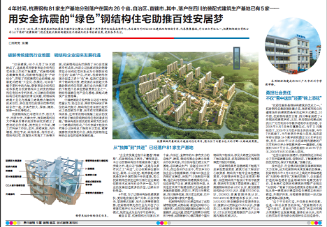 中國建筑設(shè)計(jì)院有限公司總工程師范重認(rèn)為,經(jīng)過企業(yè)、高校和科研設(shè)計(jì)單位的共同努力,鋼結(jié)構(gòu)住宅目前已經(jīng)形成了類型較為豐富、技術(shù)相對(duì)完善的結(jié)構(gòu)體系,這種采用鋼與混凝土組合技術(shù)有助于解決傳統(tǒng)鋼結(jié)構(gòu)住宅的諸多問題?!颁摻Y(jié)構(gòu)是目前抗震效果最為優(yōu)秀的一個(gè)建筑結(jié)構(gòu)形式。”中冶京誠工程技術(shù)有限公司結(jié)構(gòu)總工程師王立軍說,隨著國家相關(guān)政策的出臺(tái),類似杭蕭鋼構(gòu)這樣的企業(yè)也將迎來發(fā)展機(jī)遇。
