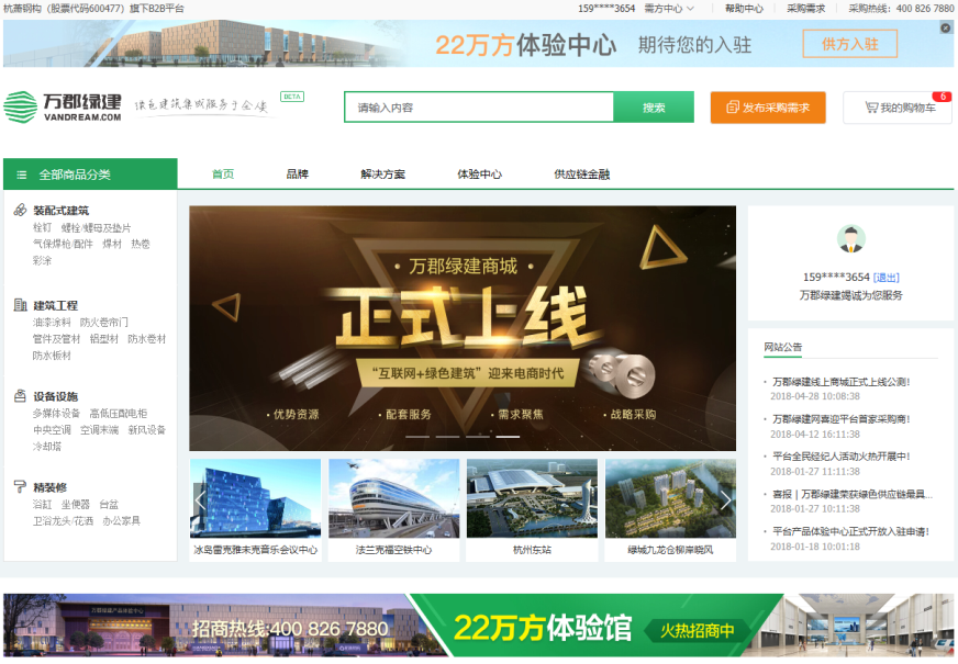 2018年4月28日,杭蕭鋼構(gòu)股份有限公司(以下簡稱:杭蕭鋼構(gòu))旗下控股子公司萬郡綠建科技股份有限公司(以下簡稱:萬郡綠建)成立的以綠色建筑全產(chǎn)業(yè)鏈材料為產(chǎn)品的垂直領(lǐng)域B2B交易平臺正式全面開放公測,引起建筑行業(yè)廣泛關(guān)注的地產(chǎn)供應(yīng)鏈商業(yè)模式變革正式拉開了序幕。