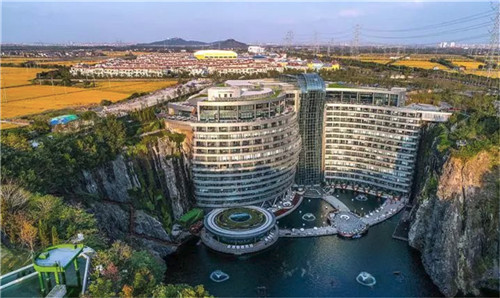 上海佘山世茂洲際酒店(又名:世茂深坑洲際酒店),是世界首個(gè)建造在廢石坑內(nèi)的五星級(jí)酒店,被美國(guó)國(guó)家地理譽(yù)為“世界建筑奇跡”。