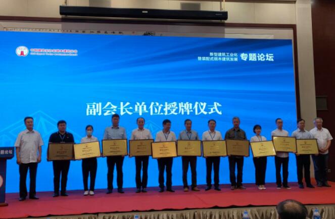 24日下午進(jìn)行的“新型建筑工業(yè)化暨裝配式鋼(木)建筑發(fā)展專題論壇”上,萬郡綠建作為本次專題論壇的協(xié)辦單位,受邀上臺發(fā)表精彩演講,中國建筑業(yè)協(xié)會鋼木建筑分會授予杭蕭鋼構(gòu)副會長單位的榮譽(yù),并在現(xiàn)場完成授牌儀式。