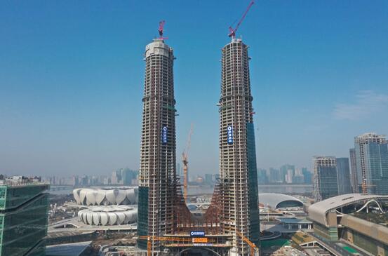 據(jù)悉,這座杭州新地標(biāo)是一座鋼結(jié)構(gòu)為主體的雙塔樓,杭蕭鋼構(gòu)作為唯一一家鋼構(gòu)企業(yè)承建該項(xiàng)目主體的鋼構(gòu)工程,負(fù)責(zé)兩棟塔樓的主體鋼結(jié)構(gòu)工程、兩棟塔樓之間的鋼拱連橋及懸垂屋面,以及東、西裙房商業(yè)區(qū)的鋼結(jié)構(gòu)工程。