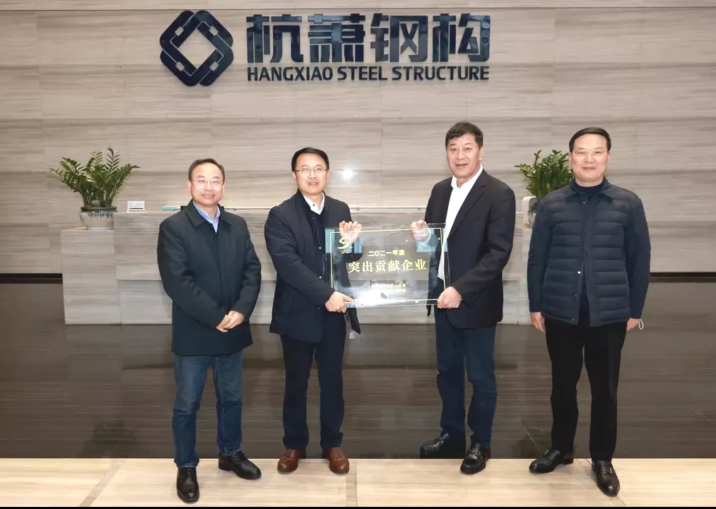 2月7日,蕭山區(qū)領(lǐng)導(dǎo)程曉東、古濤、童一峰及區(qū)政府辦公室、區(qū)科技局、區(qū)審管辦等部門負(fù)責(zé)人走訪杭蕭鋼構(gòu)股份有限公司(以下簡(jiǎn)稱“杭蕭鋼構(gòu)”),并頒發(fā)2021年度蕭山“突出貢獻(xiàn)企業(yè)”榮譽(yù)獎(jiǎng)牌,對(duì)企業(yè)為蕭山經(jīng)濟(jì)社會(huì)發(fā)展作出的貢獻(xiàn)表示感謝,希望企業(yè)在新的一年再接再厲、再創(chuàng)佳績(jī)。