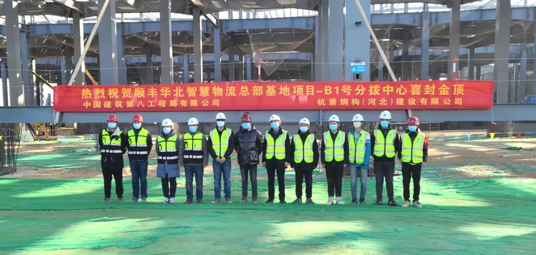 近期,由杭蕭鋼構(gòu)(河北)建設(shè)有限公司(以下簡稱“河北杭蕭”)承建的順豐華北智慧物流總部基地項(xiàng)目,完成了最后一根鋼梁的吊裝,標(biāo)志著該項(xiàng)目順利迎來了主體結(jié)構(gòu)的封頂。