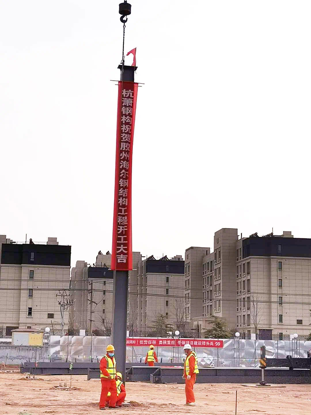 近日,由杭蕭鋼構(gòu)(山東)有限公司(以下簡稱“山東杭蕭”)承建的膠州海爾互聯(lián)工廠生產(chǎn)配套項目在業(yè)主、總包及監(jiān)理單位的共同見證下,首根鋼柱順利吊裝完成,標(biāo)志著該工程正式進入鋼結(jié)構(gòu)安裝階段。