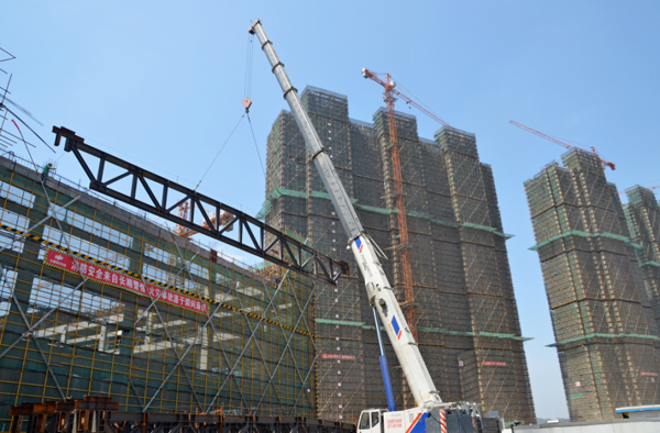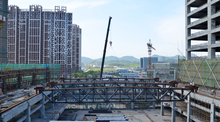 5月30日,由浙江杭蕭鋼構(gòu)股份有限公司承建的青山湖科技城越秀城市綜合體(一期)A1區(qū)酒店裙房宴會(huì)廳100噸桁架高空組合滑移成功。