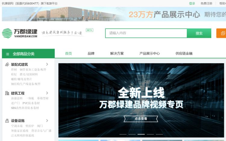 杭蕭鋼構(gòu)從傳統(tǒng)鋼結(jié)構(gòu)工程企業(yè)轉(zhuǎn)型成為技術(shù)服務(wù)型企業(yè),大力挺進(jìn)“互聯(lián)網(wǎng)+”領(lǐng)域,并于2018年成立了萬郡綠建科技股份有限公司,建立起以綠色建筑全產(chǎn)業(yè)鏈材料為產(chǎn)品的垂直領(lǐng)域B2B電商交易平臺。