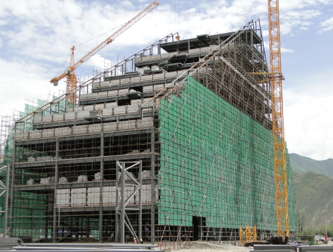 ??? 拉薩圣地天堂洲際大飯店四棟鋼結(jié)構(gòu)酒店建筑面積9.8萬(wàn)平方,A棟結(jié)構(gòu)標(biāo)高59.27米,B棟結(jié)構(gòu)標(biāo)高72.606米。