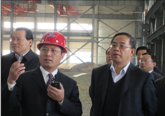 總經(jīng)理張德才陪同領(lǐng)導(dǎo)們參觀生產(chǎn)車間