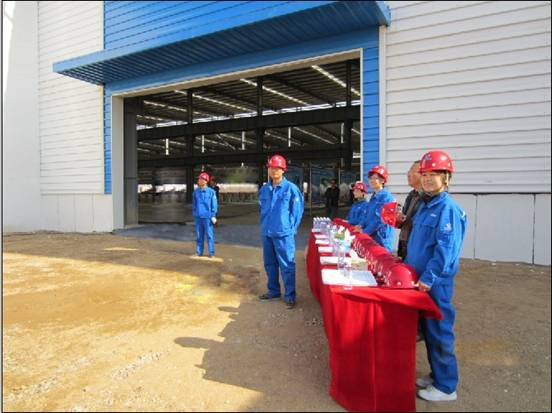 內(nèi)蒙古杭蕭鋼構(gòu)員工身著工作服迎接領(lǐng)導(dǎo)們到來