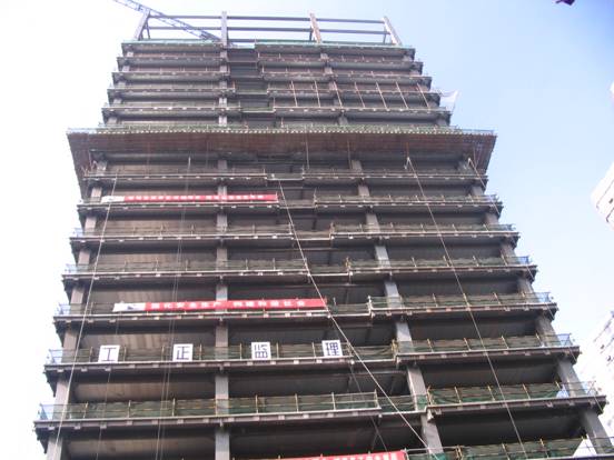 ??? 寧波三寶工程外形以框筒結(jié)構(gòu)建筑,鋼結(jié)構(gòu)共26支柱,外框18支,核心筒8支,最大壁厚達40毫米的箱型柱。主體結(jié)構(gòu)地下室3層、地上24層、建筑高度為119米,建筑面積約49000㎡。