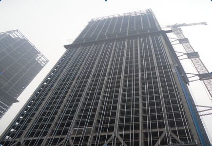 ??? 萬銀雙子中心2號(hào)樓鋼構(gòu)工程,位于杭州市錢江新城富春路與民心路口,建筑高度為198M,建筑面積65000平方,用鋼量12000噸。結(jié)構(gòu)為矩形鋼管砼柱筒體結(jié)構(gòu),其中筒體內(nèi)部全部采用鋼結(jié)構(gòu)、墻體為混凝土剪力墻。筒體面積為700㎡,外框面積1200㎡,筒體內(nèi)設(shè)有14支箱形柱12支H型鋼骨柱,電梯井均采用箱形鋼柱,整個(gè)筒體內(nèi)1~47層兩部樓梯均為鋼樓梯,同時(shí)設(shè)有4道人字支撐。這給現(xiàn)場安裝與進(jìn)度控制帶來一定難度,這也是項(xiàng)目施工過程中的難點(diǎn),因筒體不能及時(shí)完成,將影響到后續(xù)多家分包單位作業(yè)。外框設(shè)有三道轉(zhuǎn)換層,其中第二道轉(zhuǎn)換層斜梁跨三個(gè)樓層,施工難度大。整幢樓經(jīng)統(tǒng)計(jì)鋼柱1152支,鋼梁6218支,樓層板40210㎡。完成整幢樓的吊裝需9180吊,由于現(xiàn)場塔吊只有一部,為了加快施工進(jìn)度,項(xiàng)目部管理人員安排晚上值班,安裝工人分三班倒,充分利用夜間作業(yè)來完成吊裝工作,最終在公司各職能部門的配下,上下一心完成本項(xiàng)目。