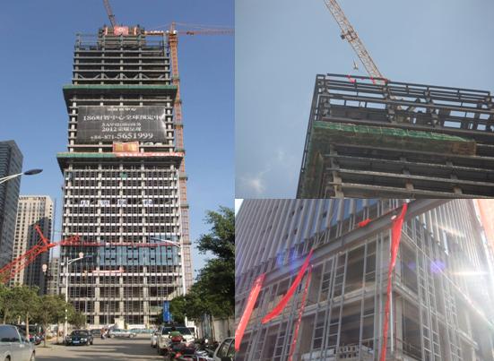 ??? 2012年1月15日上午9點18分昆明欣都龍城鋼結(jié)構(gòu)工程順利結(jié)頂,甲方鐘總、袁總、監(jiān)理單位、總包單位人員均參加了本次結(jié)頂儀式。