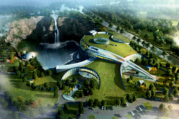 上海世茂新體驗項目深坑酒店位于上海松江區(qū)佘山國家旅游度假村,酒店地上三層、地下17層、水下一層,并設有蹦極等娛樂項目。整個項目投資6億元左右,含天然室內(nèi)花園、大型景觀瀑布、景觀總統(tǒng)房、水中情景房等。酒店海拔負65米,有望成為世界上人工坑內(nèi)海拔最低的酒店。