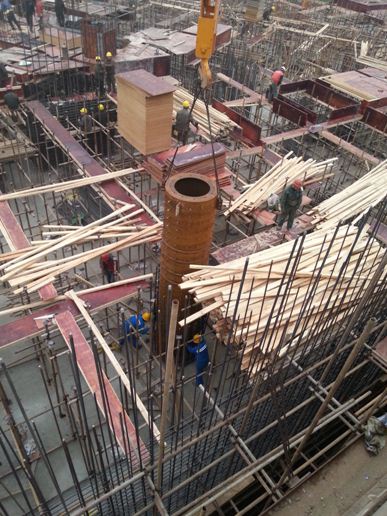 ??? 本工程于2012年11月27日接到中標(biāo)通知,11月30日出第一版結(jié)構(gòu)圖,按總包單位要求需在12月底完成首節(jié)柱制作,時(shí)間緊、任務(wù)重。在公司各級(jí)領(lǐng)導(dǎo)、各相關(guān)部門的大力支持配合下,隨即展開了緊張的深化設(shè)計(jì)、備料采購(gòu)及加工工作,按預(yù)定計(jì)劃于12月底完成首節(jié)柱的加工,并提前發(fā)至現(xiàn)場(chǎng)。我司的統(tǒng)籌安排、生產(chǎn)配合工作為現(xiàn)場(chǎng)的施工配合創(chuàng)造了良好的開端,獲得了業(yè)主、監(jiān)理及總包和參建單位的一致好評(píng),樹立了“杭蕭鋼構(gòu)”的良好品牌形象。