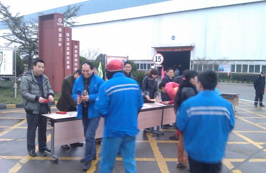 ??? 2月17日,新年第一天上班。當(dāng)天上午,公司副總工程師黃振華、工藝副總楊政、制造運(yùn)營總監(jiān)覃波、總經(jīng)理助理蔡璐璐、法務(wù)部經(jīng)理孫國彬、人力資源部經(jīng)理張超、行政安全部經(jīng)理石鐵君等人頂著寒風(fēng)駐足廠區(qū)門口,熱烈歡迎員工們返廠,同時(shí)發(fā)放新年紅包,這是新的一年、新的開始、也是新的祝福和期望。