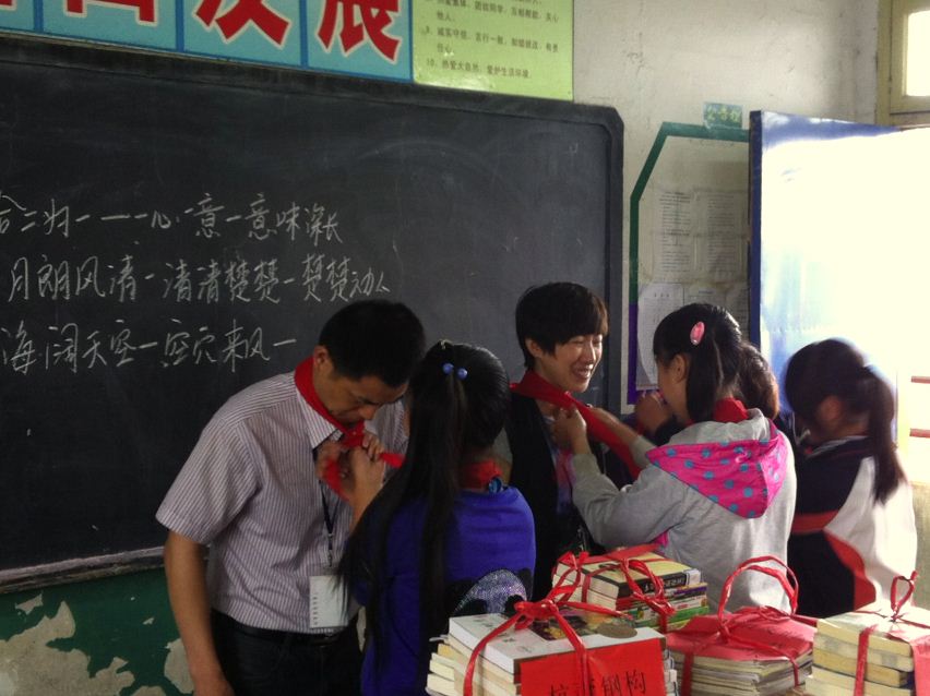 ??? 杭蕭一行人員的到來受到了學校領導和同學們的熱烈歡迎,學生代表們還給我們系上表達他們祝福的紅領巾??吹胶⒆觽円粡垙?zhí)鹈赖男δ?,我們?yōu)槟転閷W校的建設和孩子們的長遠發(fā)展奉獻綿薄之力而感到無比欣慰。