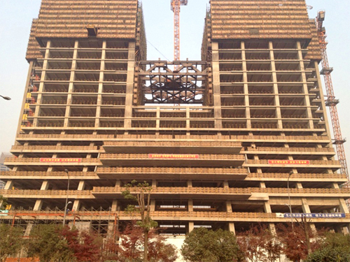 2013年12月9日,經(jīng)過全體項目人員的共同努力,在幾十米的高空完成了由浙江杭蕭鋼構(gòu)股份有限公司承建的大象國際中心項目首層巨型箱型截面桁架的安裝。