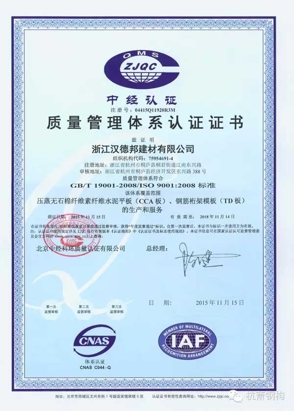 在末次會(huì)議上代表審核組鄭重宣布,一致同意本次“三體系”審核順利通過。漢德邦總經(jīng)理蔣瓊玲代表公司全體員工,向?qū)徍私M對(duì)公司在“三體系”工作中的真誠幫助表示衷心感謝,并要求各級(jí)管理人員要認(rèn)真對(duì)待審核組提出的各項(xiàng)問題和建議,及時(shí)制定相應(yīng)有效的糾正措施和實(shí)施計(jì)劃,由部門經(jīng)理牽頭,責(zé)任單位具體負(fù)責(zé)落實(shí),努力整改。同時(shí)借助外部審核后的有利時(shí)機(jī),不斷完善管理體系,積極推動(dòng)質(zhì)量、環(huán)境、職業(yè)健康安全體系持續(xù)、有效運(yùn)行。并繼續(xù)努力將公司生產(chǎn)的CCA板(壓蒸無石棉纖維素纖維水泥平板)、TD板(鋼筋桁架樓承板)、ATD板(裝配式鋼筋桁架樓承板)等系列綠色建材和建筑集成產(chǎn)品運(yùn)用到各個(gè)領(lǐng)域。